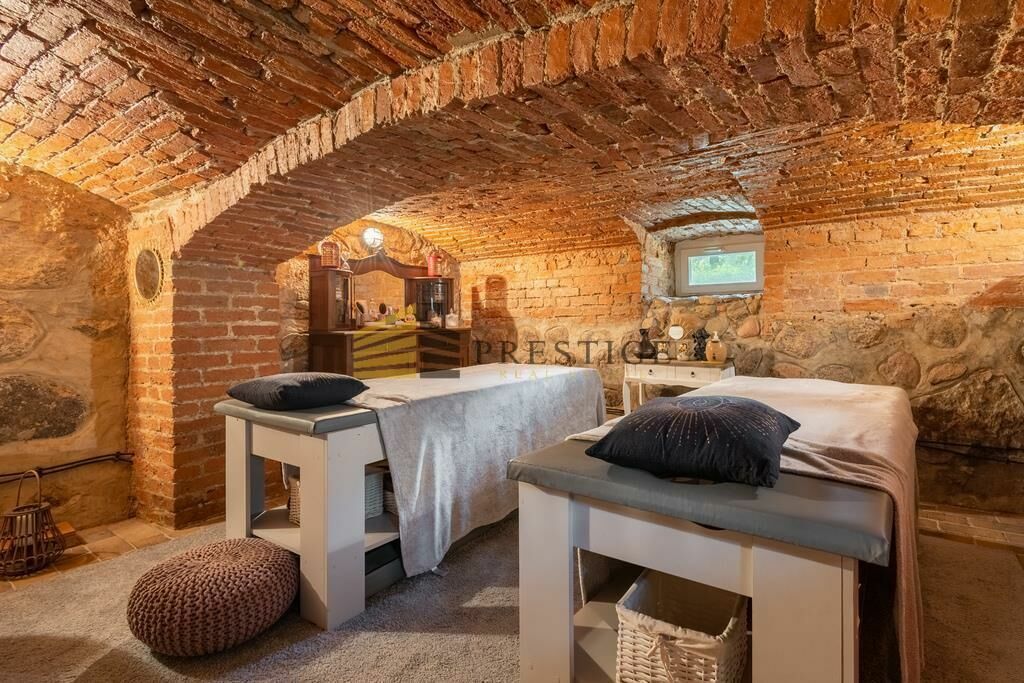 w piwnicy – sauna, pokój SPA, winniczka i sala klubowa,